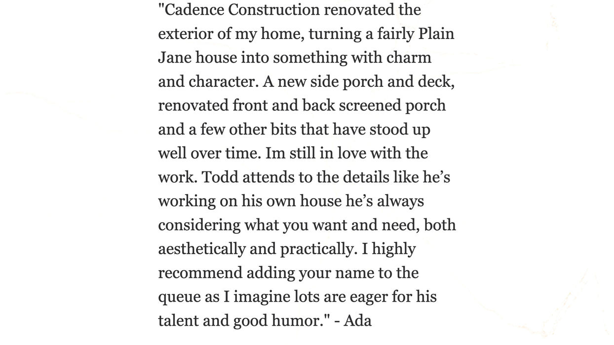 Cadence Construction, LLC is a locally owned and operated restoration and renovation company specializing in the historic properties of Durham, NC. We work with a team of talented craftspeople to restore, remodel and reimagine your home.